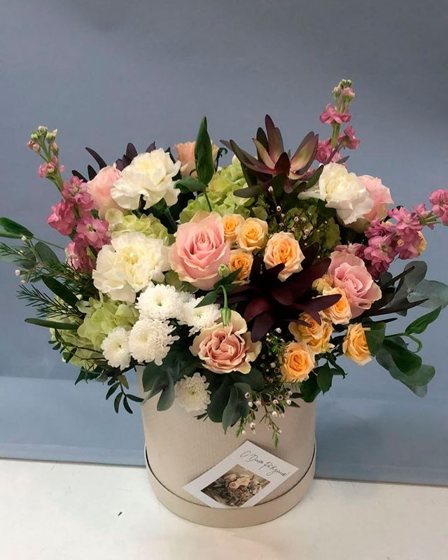 Букет в шляпной коробке «Весенний сон» с гарантией качества, цены и быстрой доставки!
