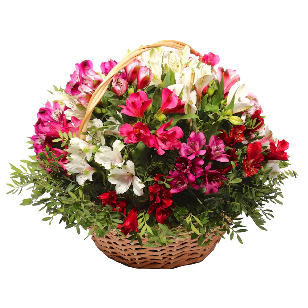 Плетёная корзина с альстромериями «Весенний вихрь» с гарантией качества, цены и быстрой доставки!