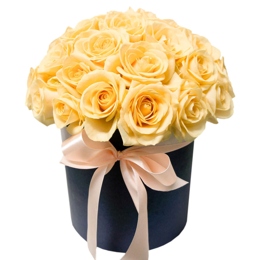 Эти нежные кремовые розы создают атмосферу утончённой элегантности. Каждая роза одноголовая и прекрасно дополняет общую композицию. Упакованы в стильную шляпную коробку тёмного цвета с изящной атласной лентой. Этот букет создаёт романтичное настроение и станет отличным подарком для любимой женщины на годовщину.